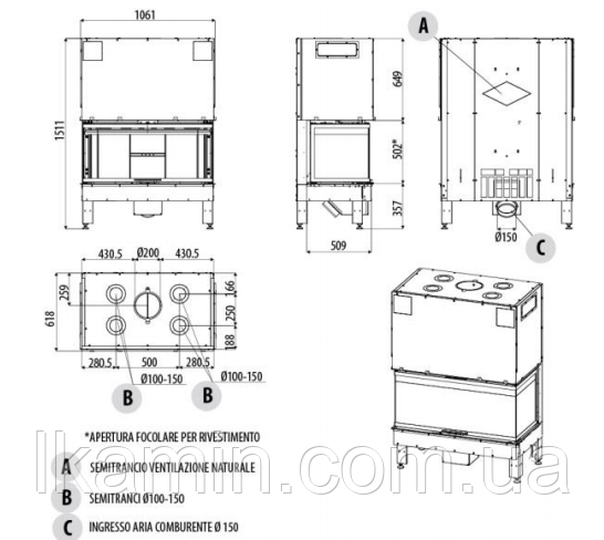Тристоронній дров’яної камін з інноваційними функціями. Він пропонує високу продуктивність, простоту використання і герметичну камеру згоряння.