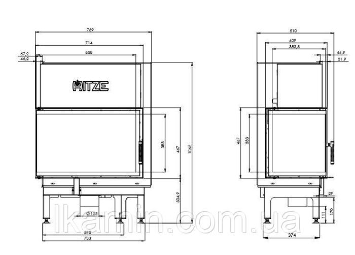 Високо температурне керамічне скло розраховане до 800°C. У конструкції топки передбачена подача холодного повітря для горіння з примусовим перекриванням заслінкою.