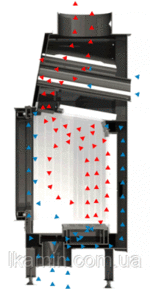 Чисте скло залишається протягом всієї експлуатації каміна завдяки потоків холодного повітря відтинає дим від скла. Так само інженерами ретельно продумана подача вторинного повітря по задній стінці топки в верхню частину каміна що дозволяє підвищити ККД каміна шляхом допалювання газів.