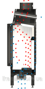 Чисте скло залишається протягом всієї експлуатації каміна завдяки потоків холодного повітря відтинає дим від скла. Так само інженерами ретельно продумана подача вторинного повітря по задній стінці топки в верхню частину каміна що дозволяє підвищити ККД каміна шляхом допалювання газів.