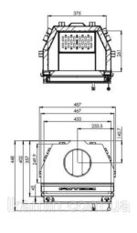 Високо температурне керамічне скло розраховане до 800°C. У конструкції топки передбачена подача холодного повітря для горіння з примусовим перекриванням заслінкою.