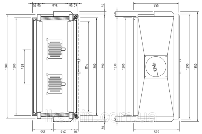 Предусмотрено наличие наружного воздуховода с диаметром 150 мм.