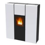 Печь на пеллетном топливе с минимальным дизайном, особенно подходящая для ограниченного пространства. Он оснащен черным, бордовым, белым окрашенным корпусом и черной топкой.