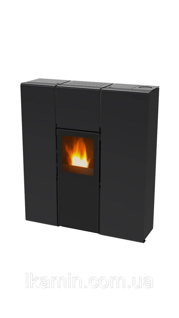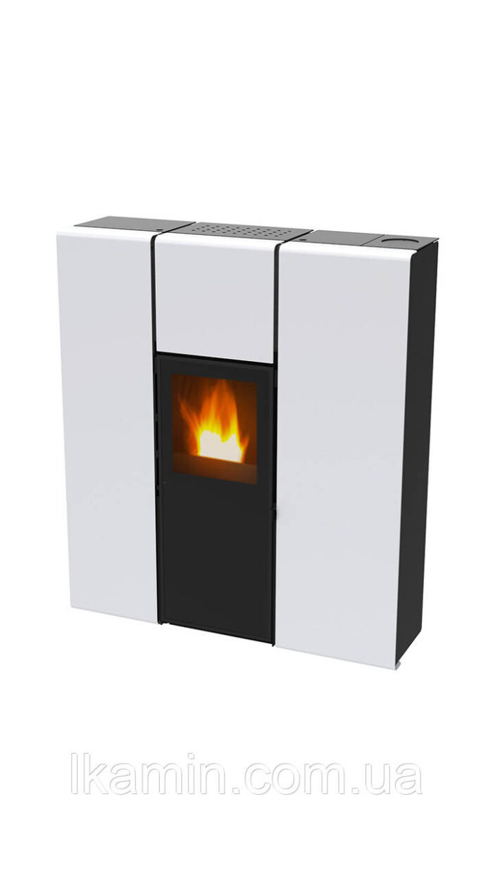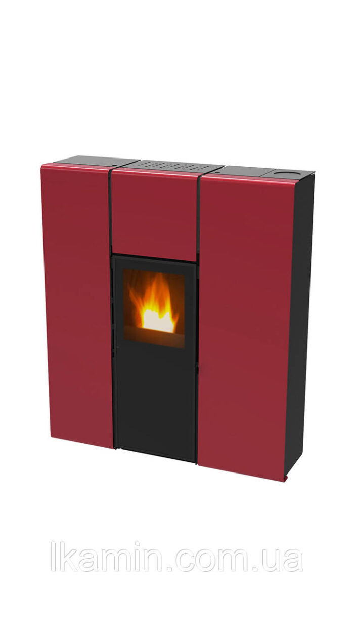 Печь на пеллетном топливе с минимальным дизайном, особенно подходящая для ограниченного пространства. Он оснащен черным, бордовым, белым окрашенным корпусом и черной топкой.