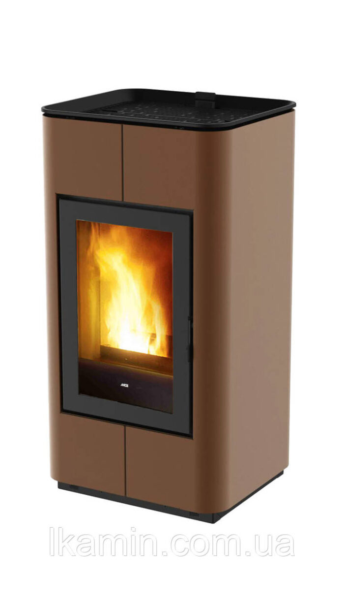 Печь на пеллетном топливе с минимальным дизайном, благодаря тому, что нет передних выходов. Он оснащен верхней алюминиевой решеткой и стальными боковыми панелями, окрашенными в черный и бронзовый цвет. Черная топка Alutec. С дополнительным комплектом, он также может быть оснащен системой воздуховодов COMFORT AIR®.