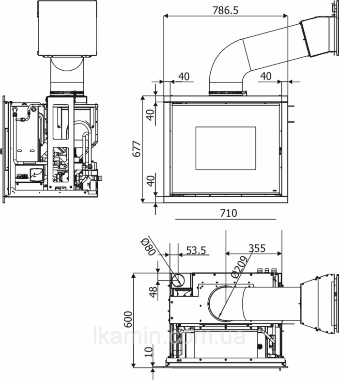 Цей камін доступний у версіях COMFORT AIR® і HYDRO. Версія Comfort Air® має камеру згоряння в Alutec, версія Hydro має камеру згорання з чавуну.